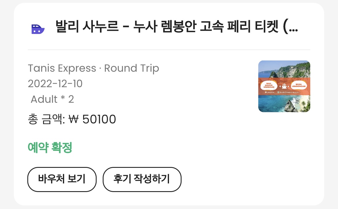 누사 렘봉안에서도 1박 묵었는데요, 그때 사누르 항구에서 고속 페리인 ‘타니스 익스프레스’ 이용하여 다녀왔습니다.