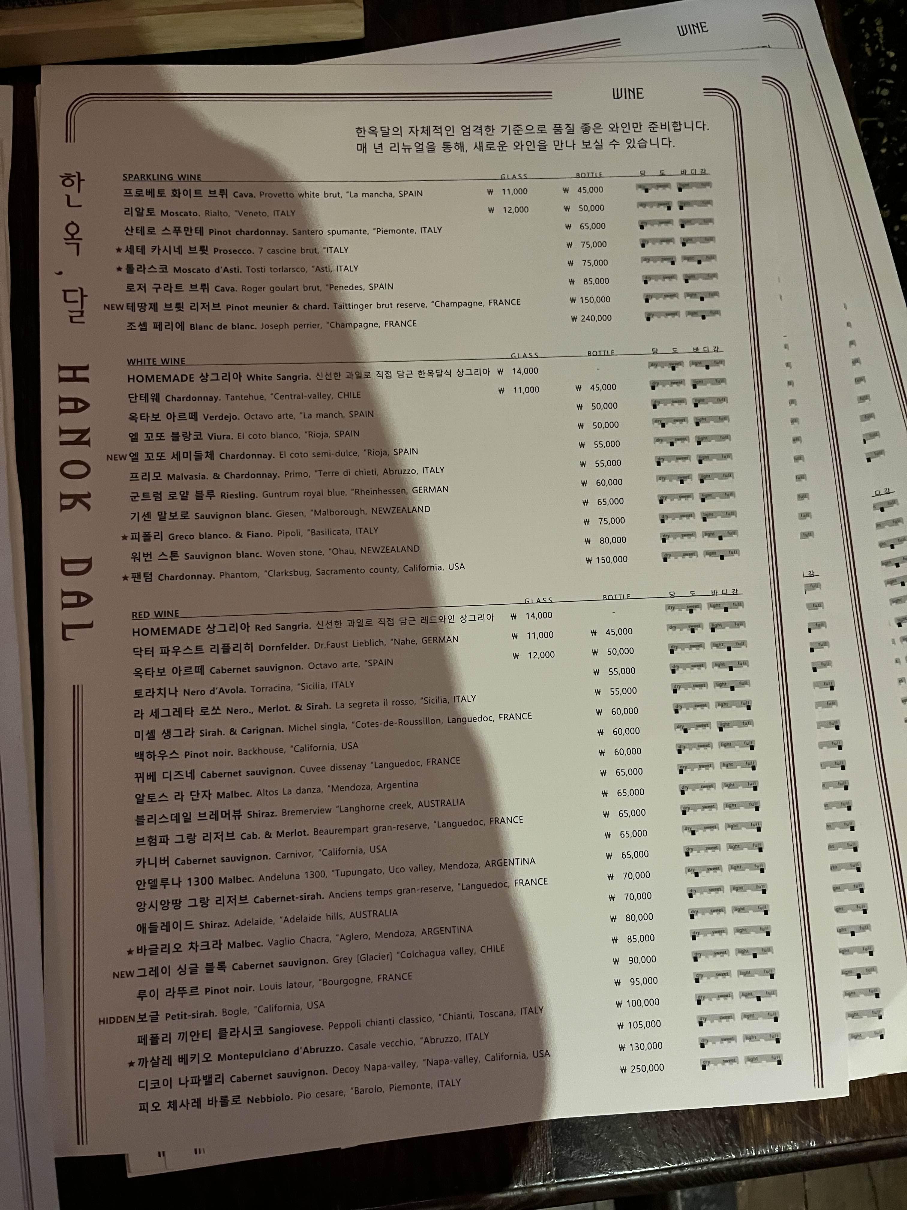 와인 메뉴판도 준비되어있었어요 :)