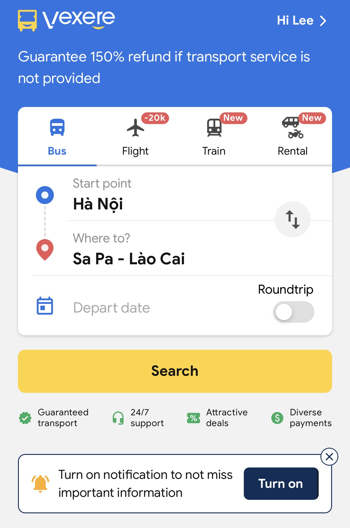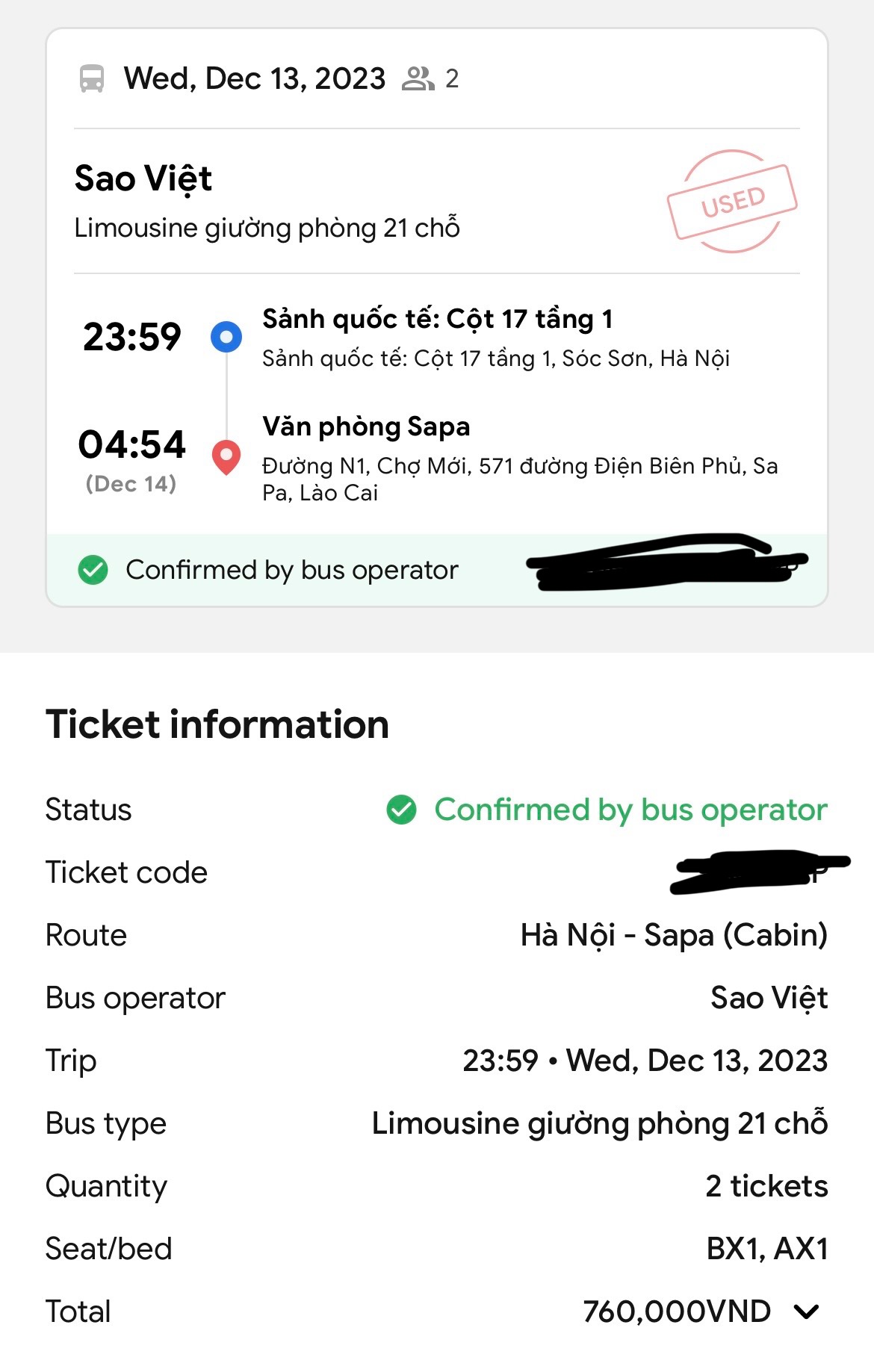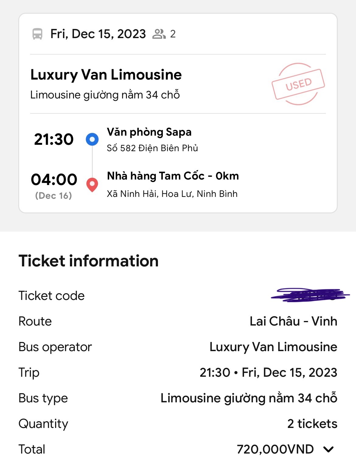다들 추천하시는 것 처럼, 저도 ‘Vexere’ 앱을 사용해서 예약했습니다 :)